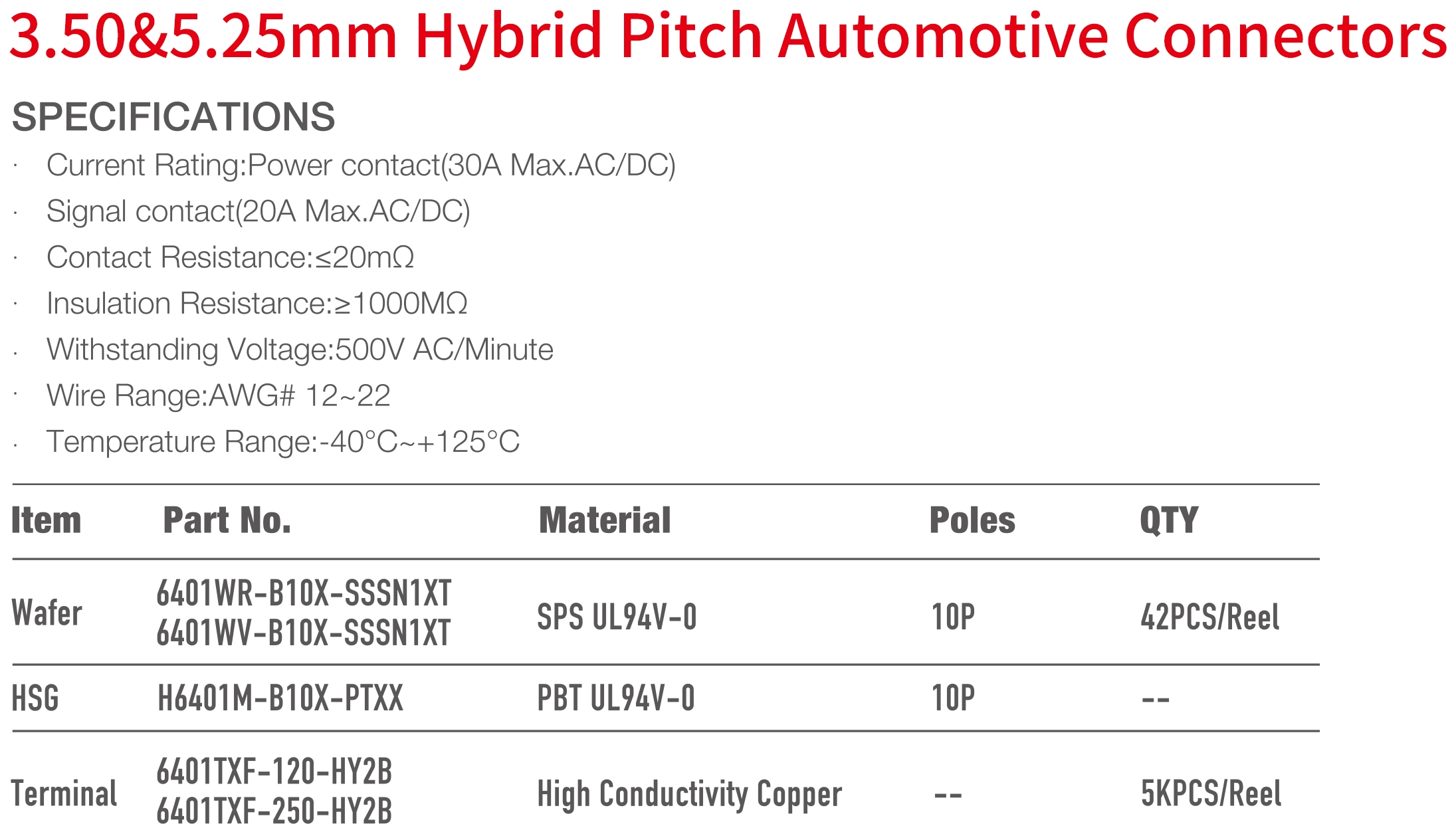 6401B Series 3.50&5.25mm Pitch (.138"&.207") 車用連接器