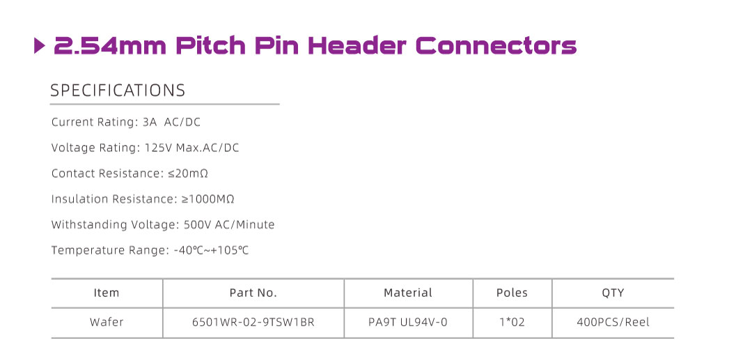 6501WR Series 2.54mm Pitch (.100") 排針連接器