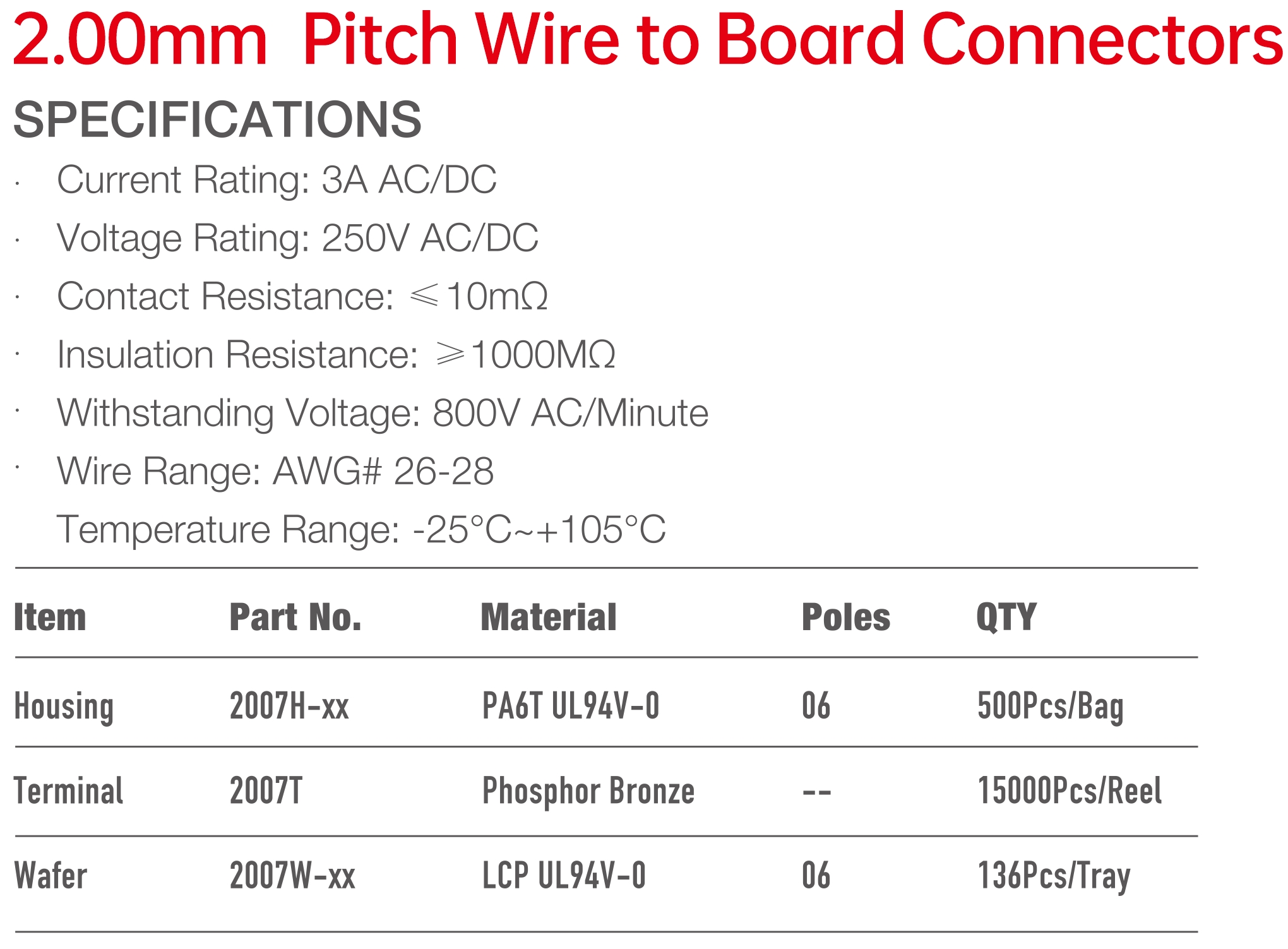2007 Series 2.00mm Pitch (.079'') 線對板連接器