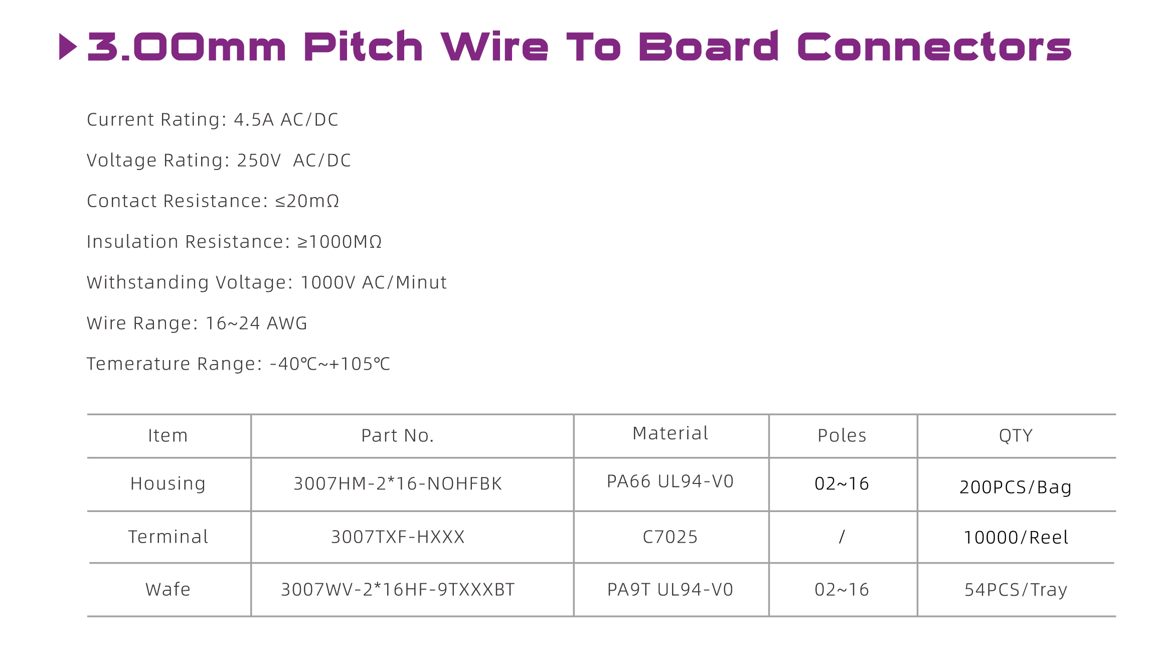 3007 Series 3.00mm Pitch (.118") 線對板連接器