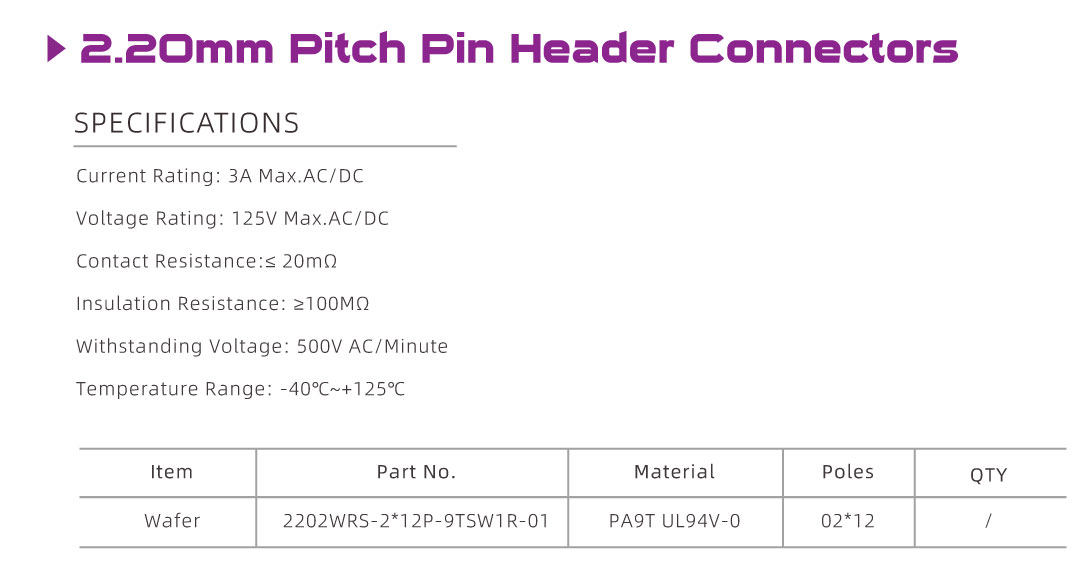 2202 Series 2.20mm Pitch (.087) Pin Header Connectors