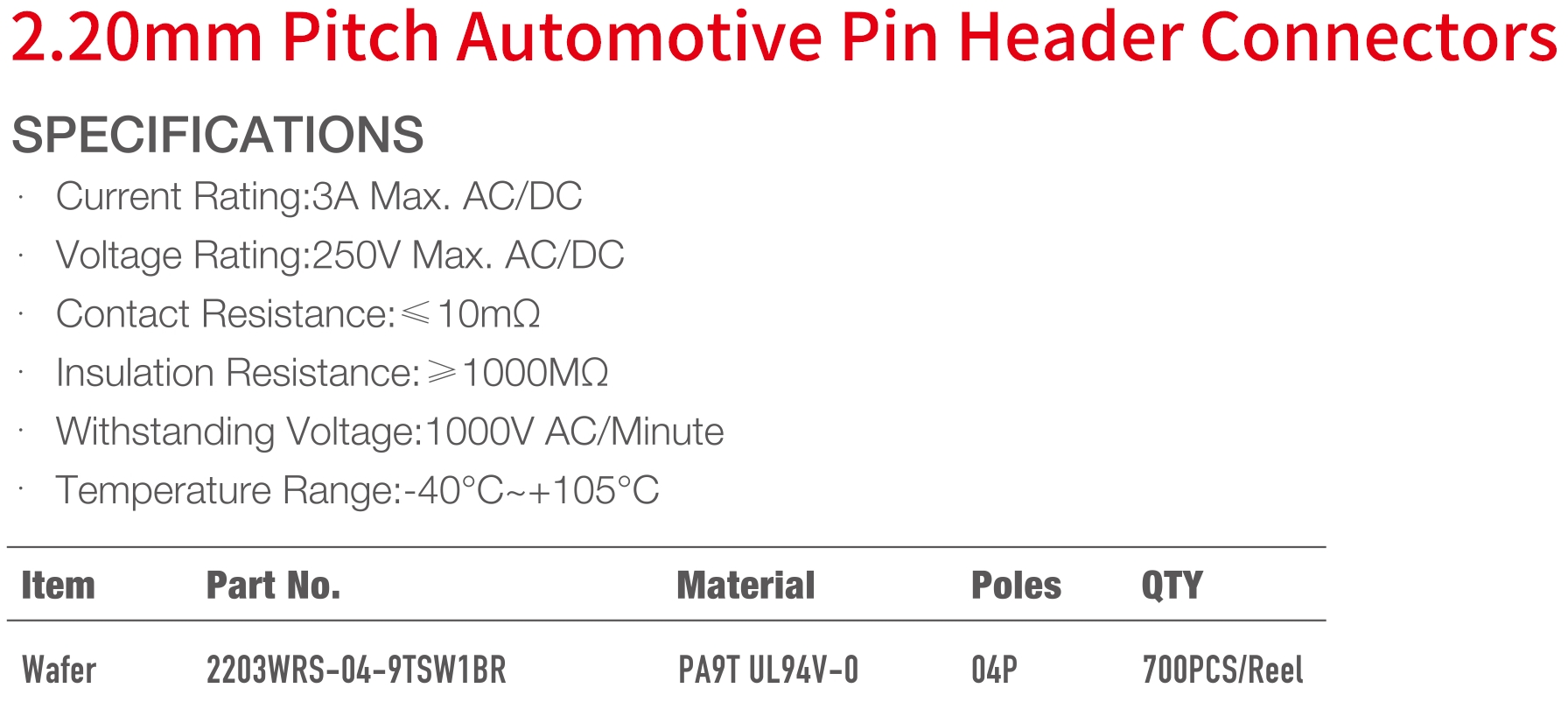 2203 Series 2.20mm Pitch (.087") Automotive Pin Header Connectors