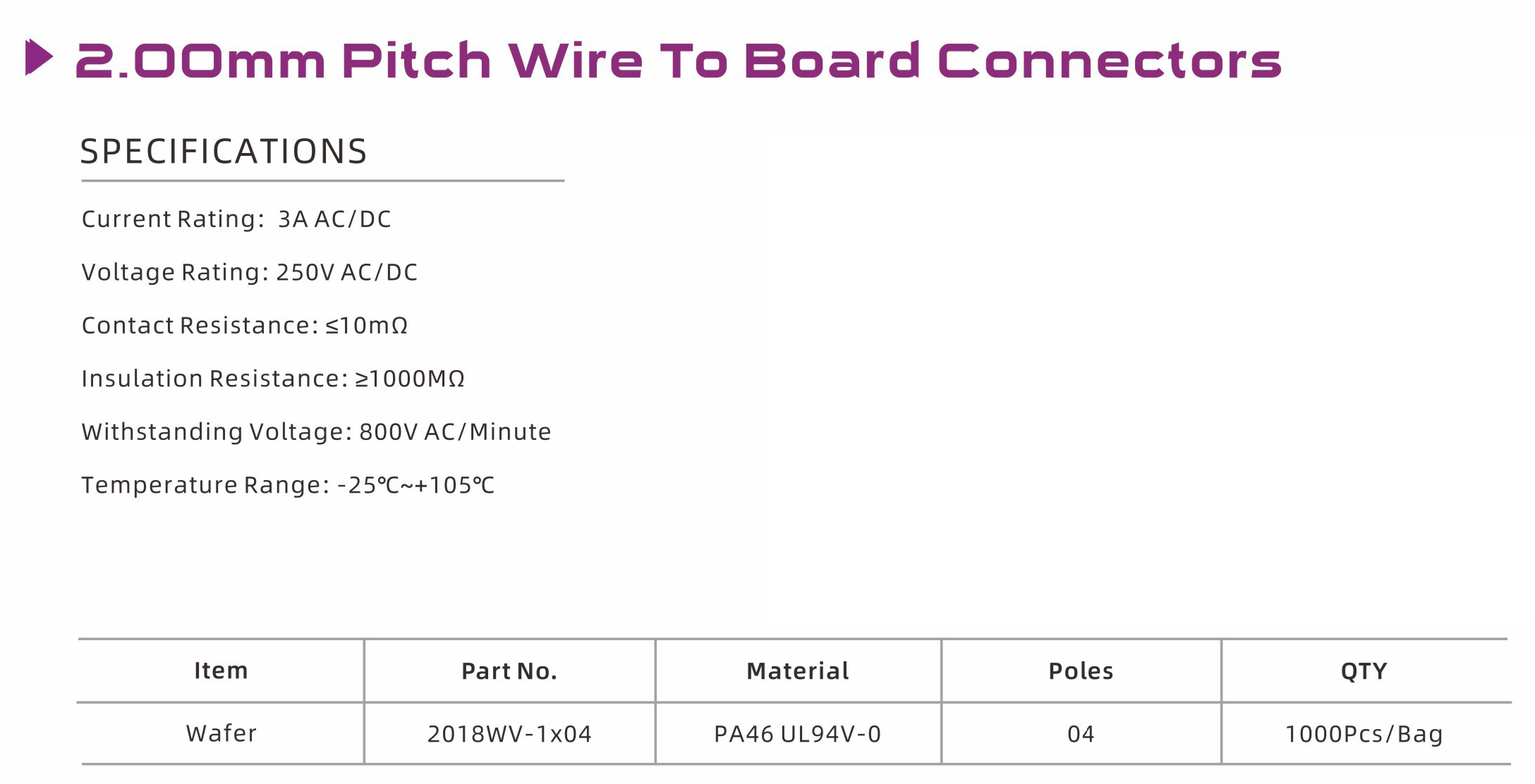 2018 Series 2.00mm Pitch (.079") 線對板連接器