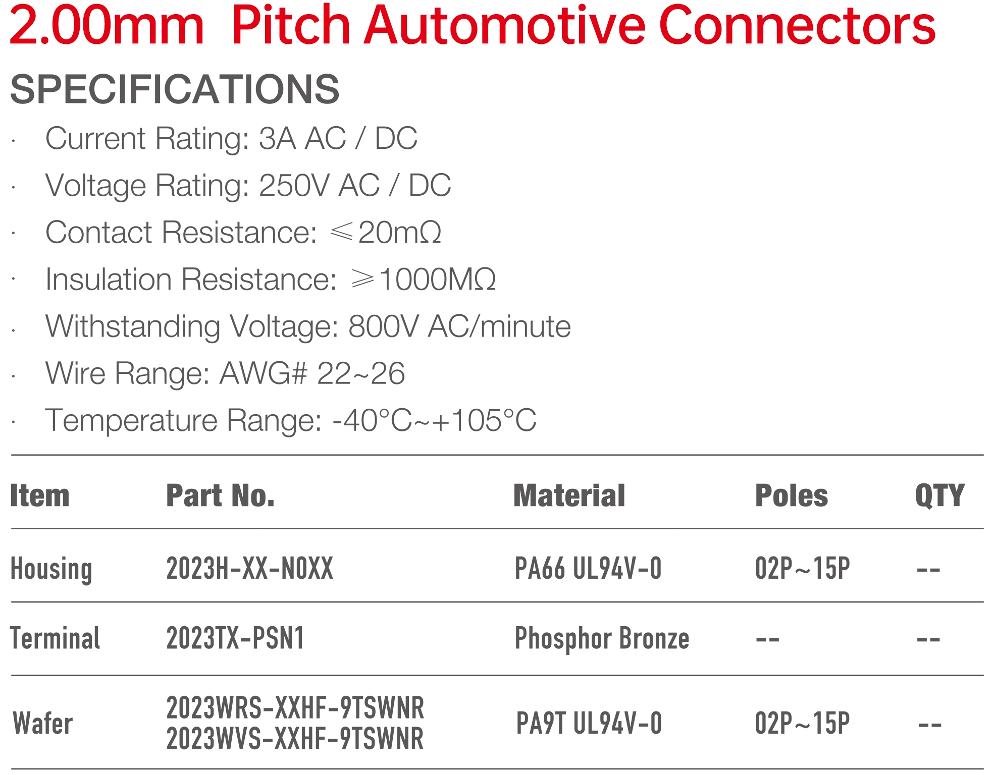 2023 Series 2.00mm Pitch (.079") 車用連接器