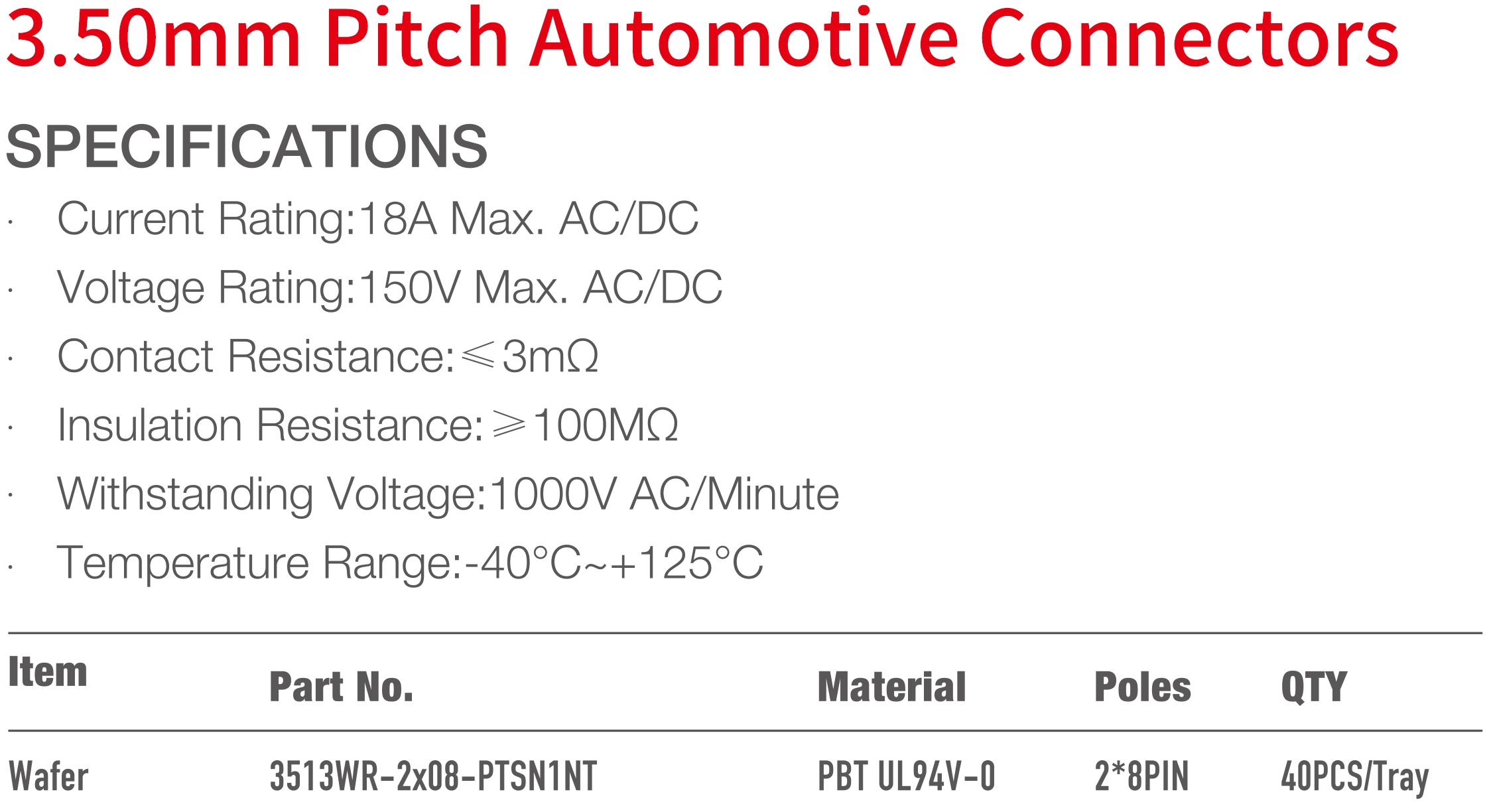 3513 Series 3.50mm Pitch (.0138") 車用連接器