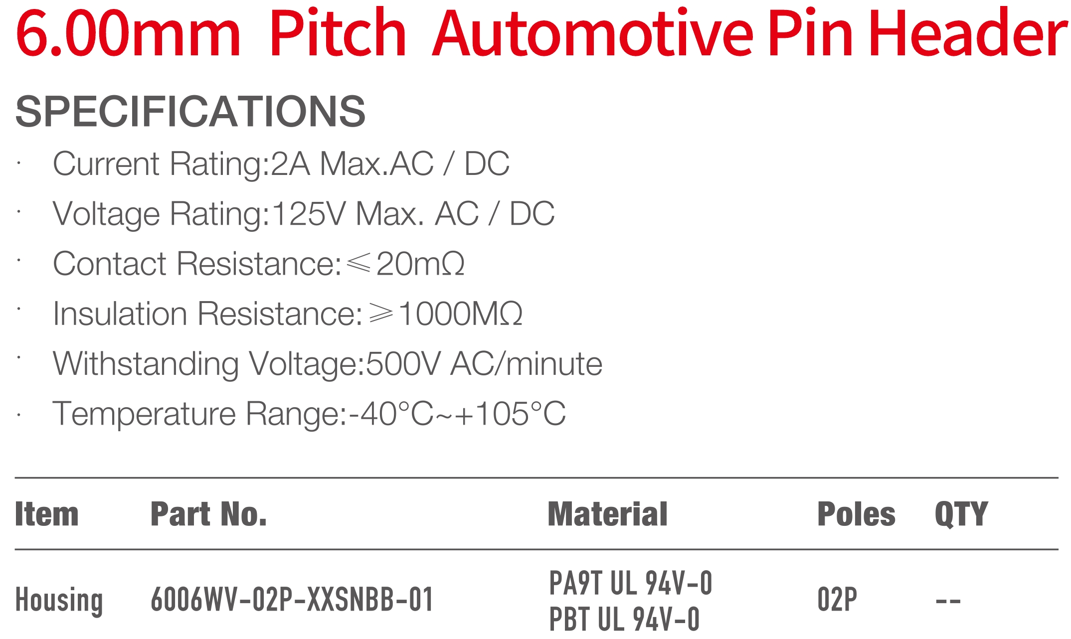 6006 Series 6.00mm Pitch (.236") 車(chē)用排針連接器
