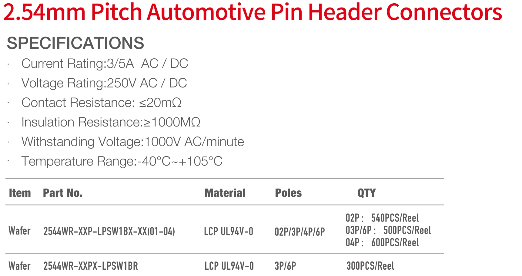 2544 Series 2.54mm Pitch (.100") 車用排針連接器