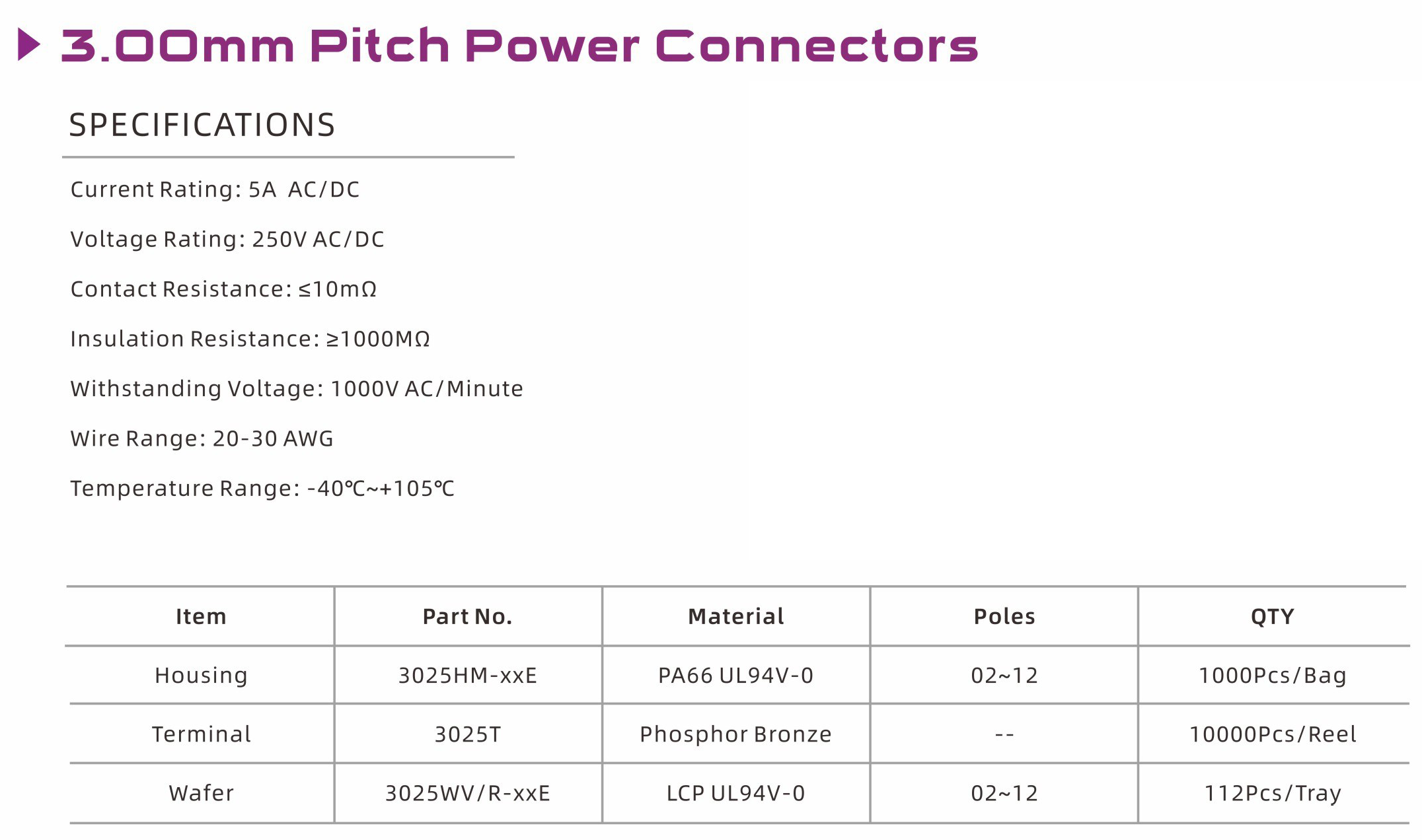 3025E Series 3.00mm Pitch (.118") 車用連接器
