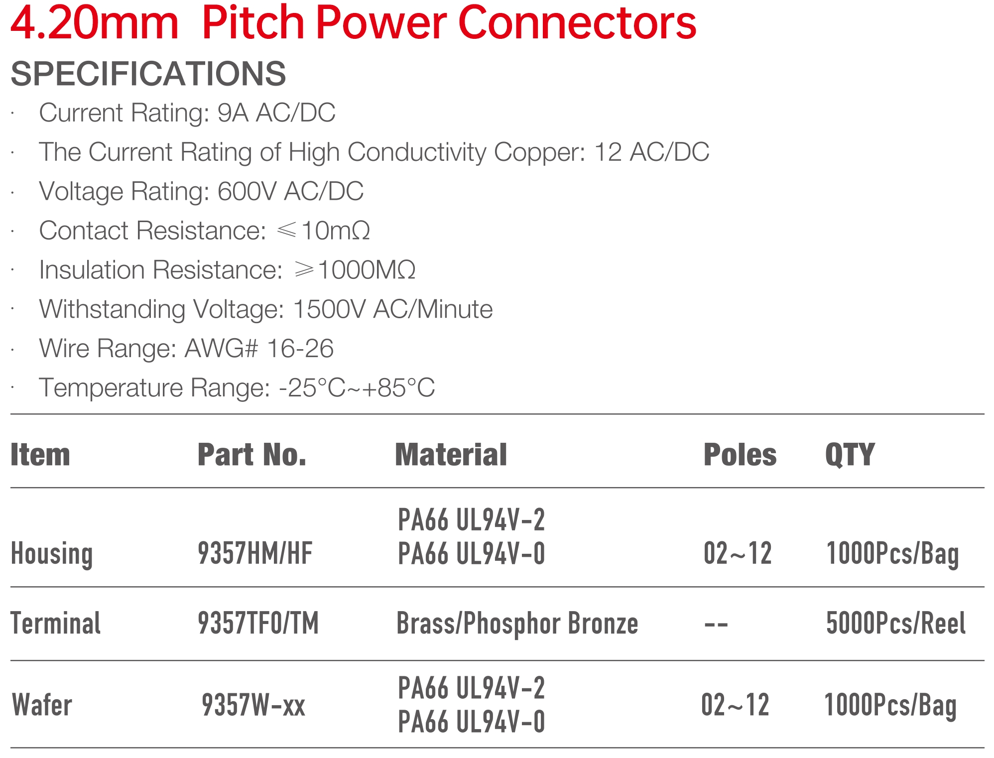9357 Series 4.20mm Pitch (.165") 線對線連接器