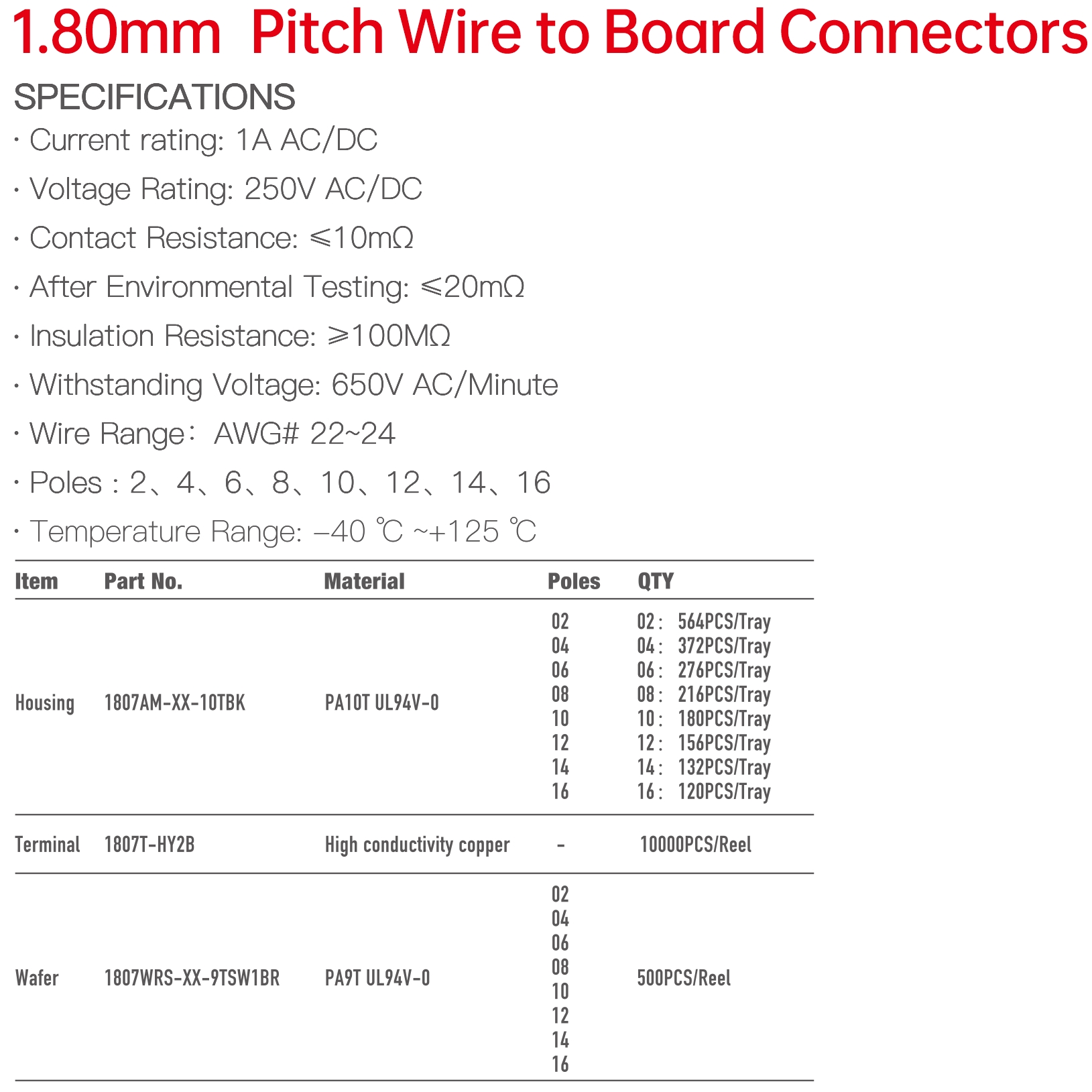 1807 Series 1.80mm Pitch (.071") 線對板連接器