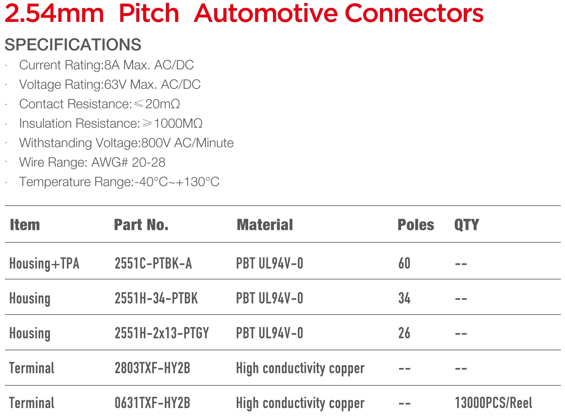 2551車用連接器 Series 2.54mm Pitch (.100") Automotive Connectors