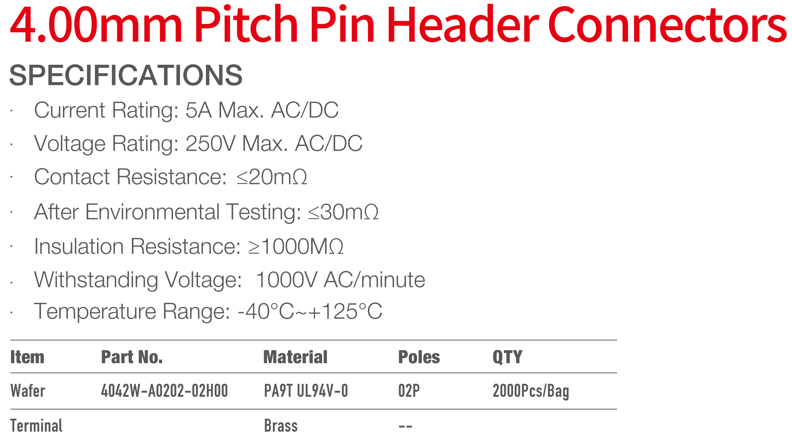 4042 Series 4.00mm Pitch (.157") Pin Header Connectors