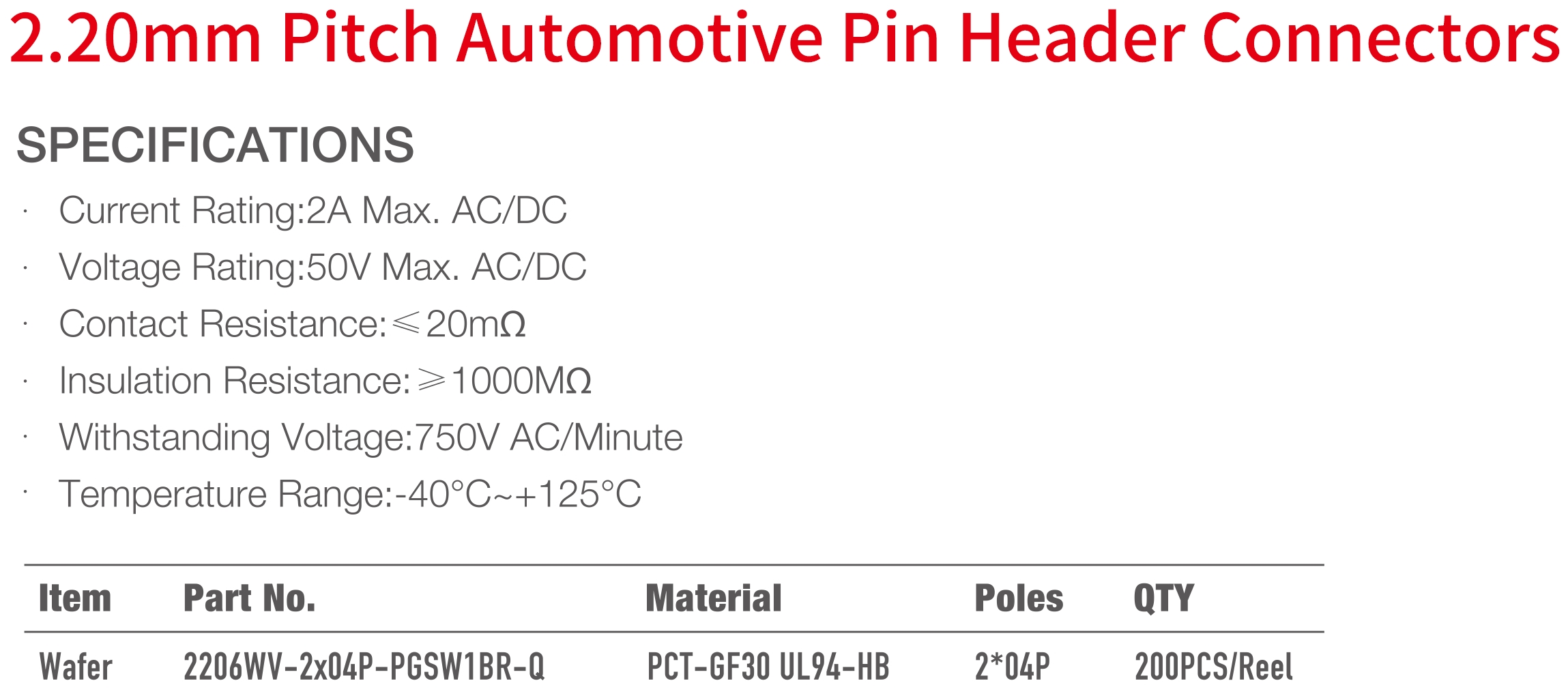 2206 Series 2.20mm Pitch (.087") Automotive Pin Header Connectors