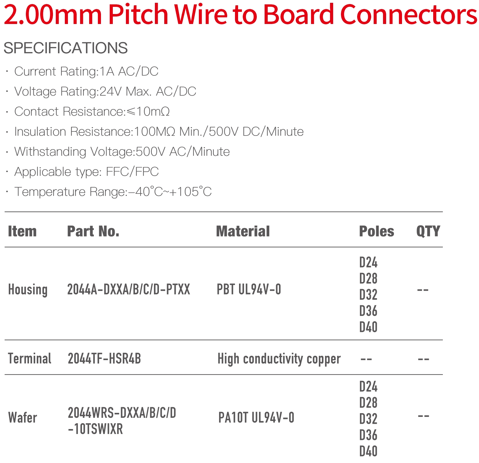 2044 Series 2.00mm Pitch (.079") Wire To Board Connectors