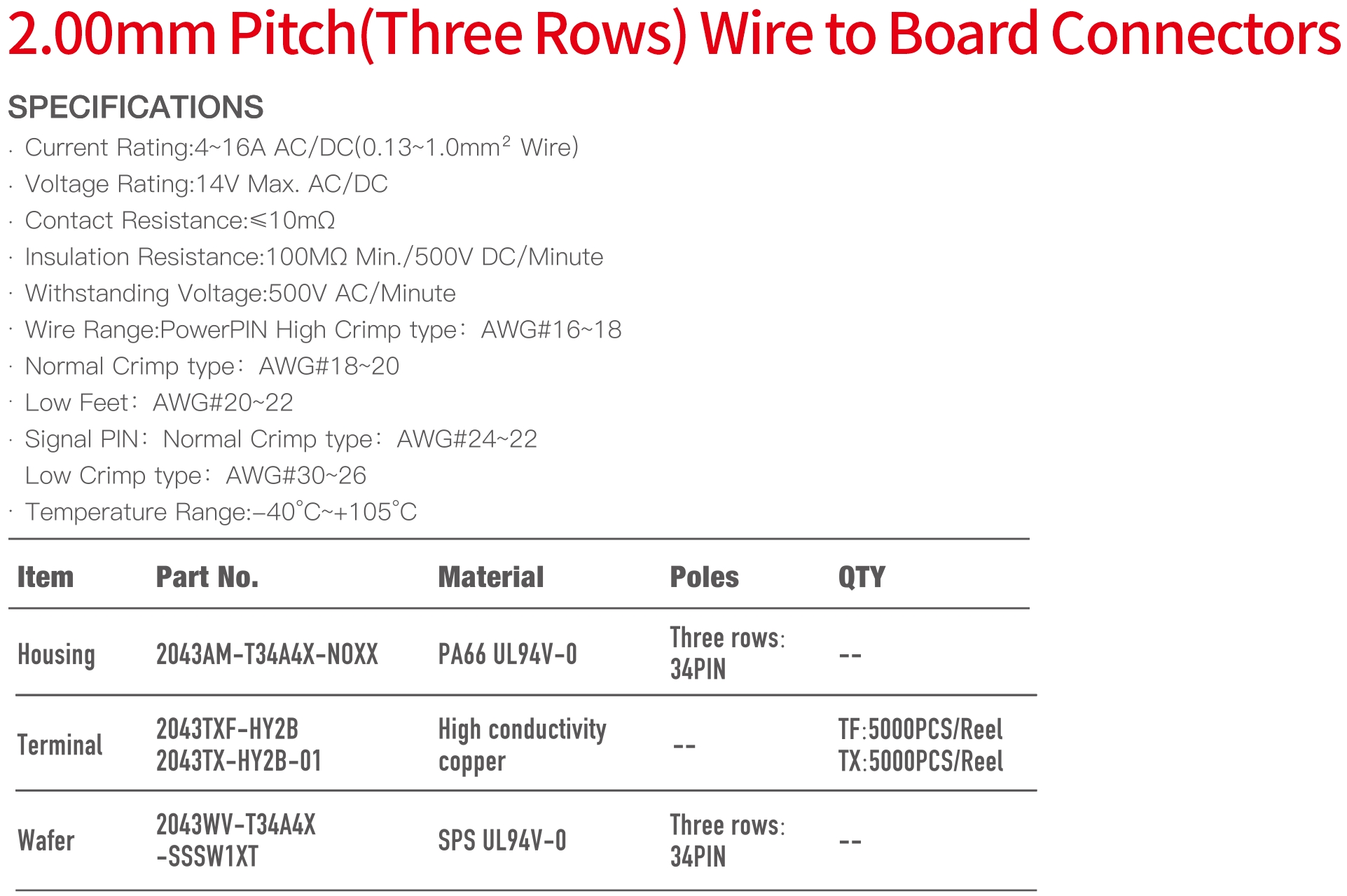 2043 Three Rows Three Rows Series 2.00mm Pitch (.079") Wire to Board Cononectors