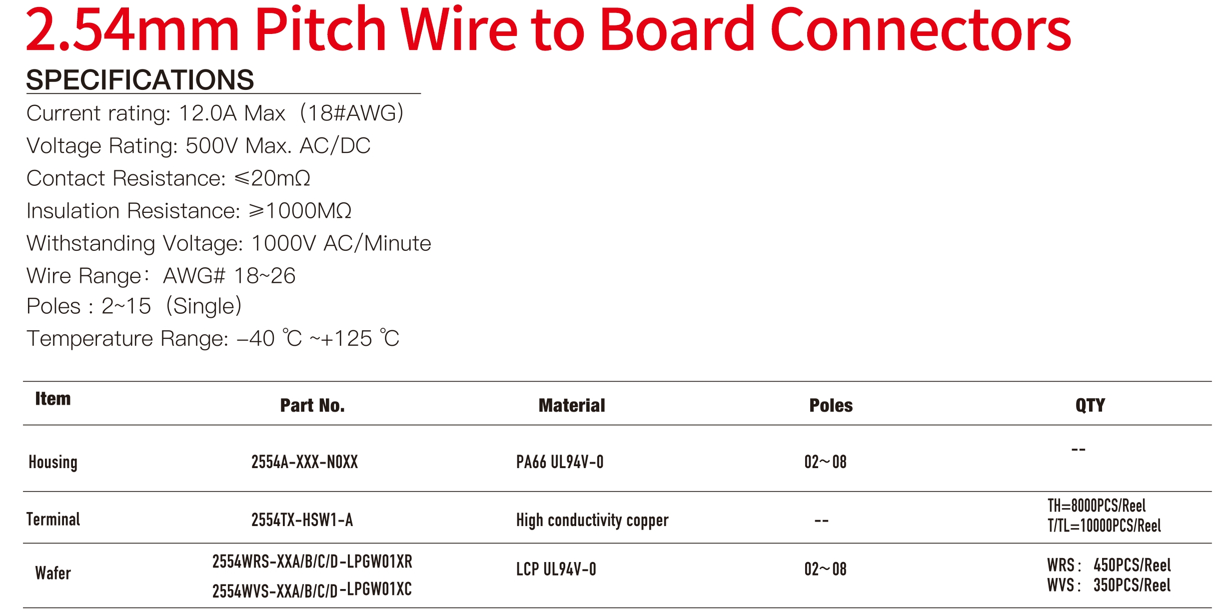 2554 Single Row Series 2.54mm Pitch(.100'') Wire to Board Connectors