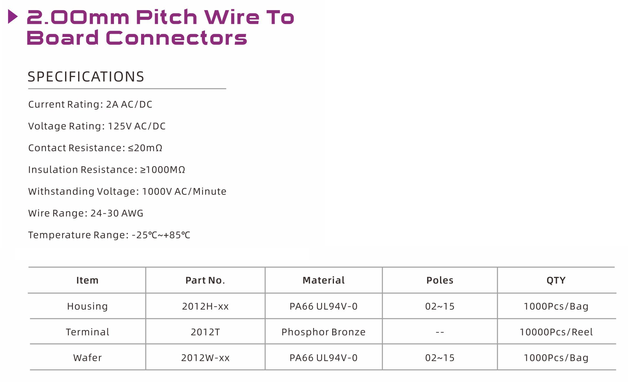 2012 Series 2.00mm Pitch (.079") 線對板連接器