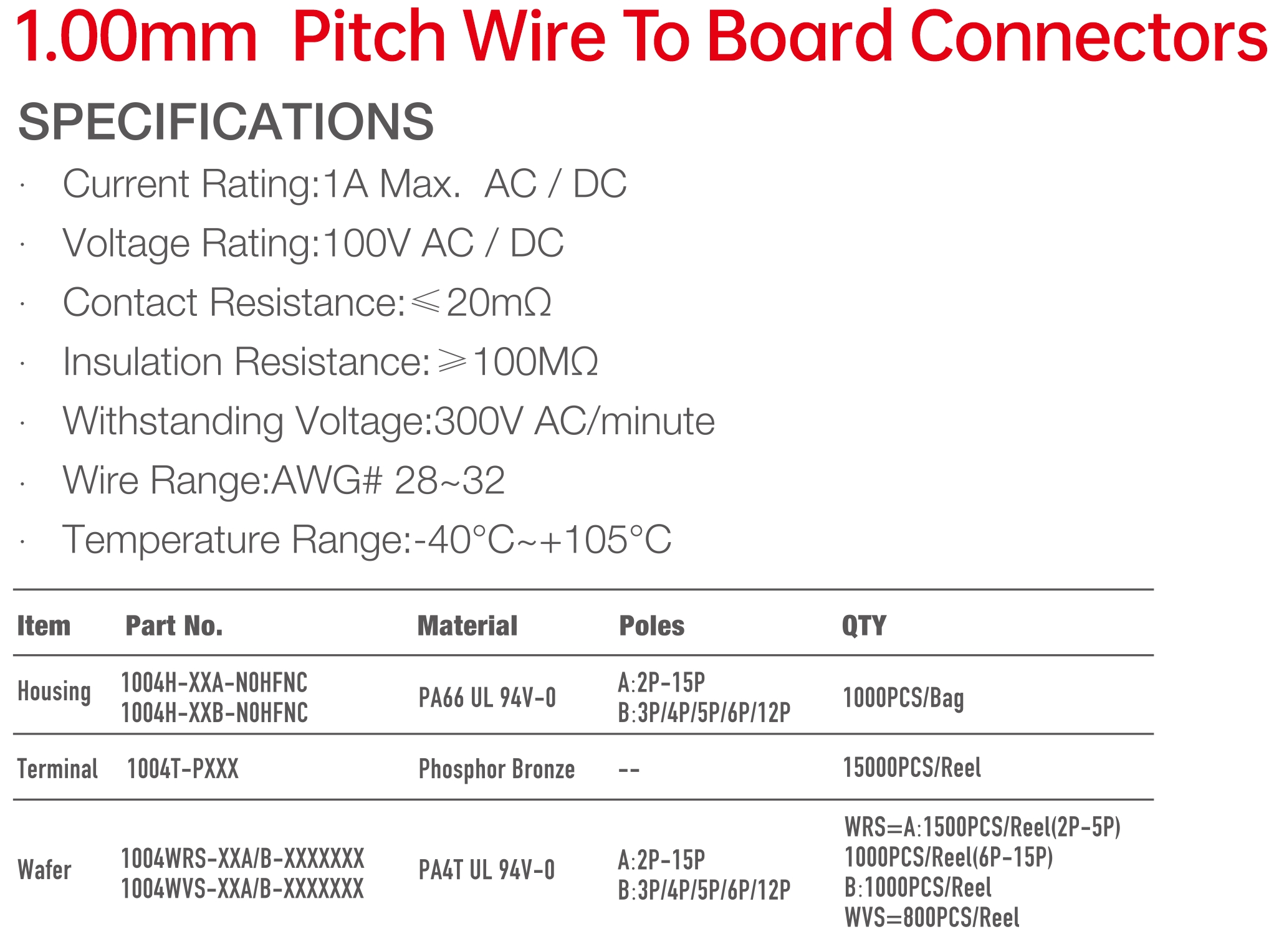 1004 Series 1.00mm Pitch (.039") 線對(duì)板連接器