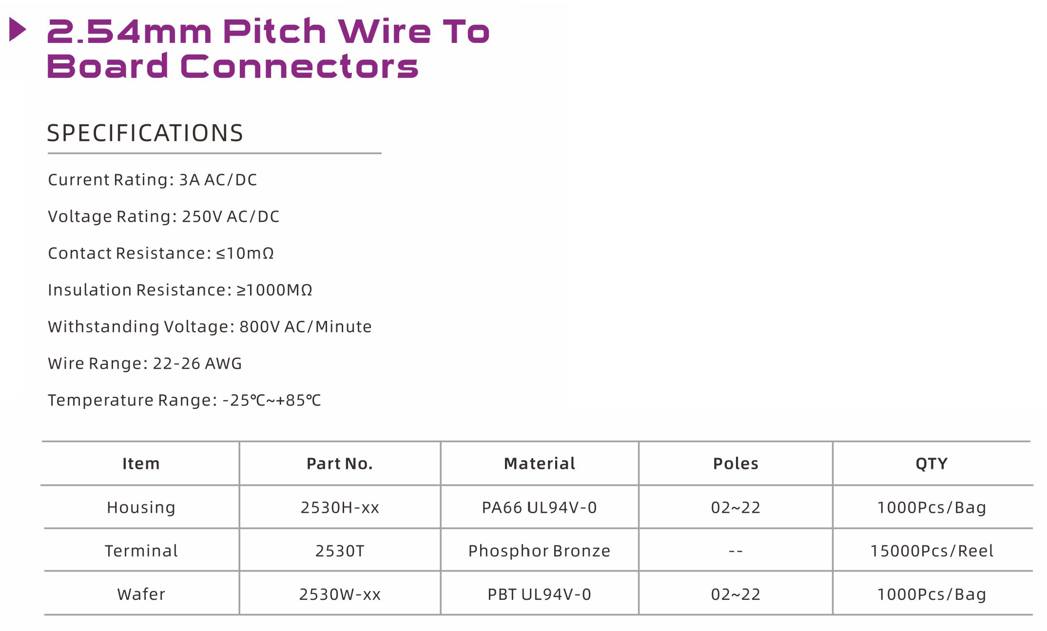 2530 Series 2.54mm Pitch (.100") 線對板連接器