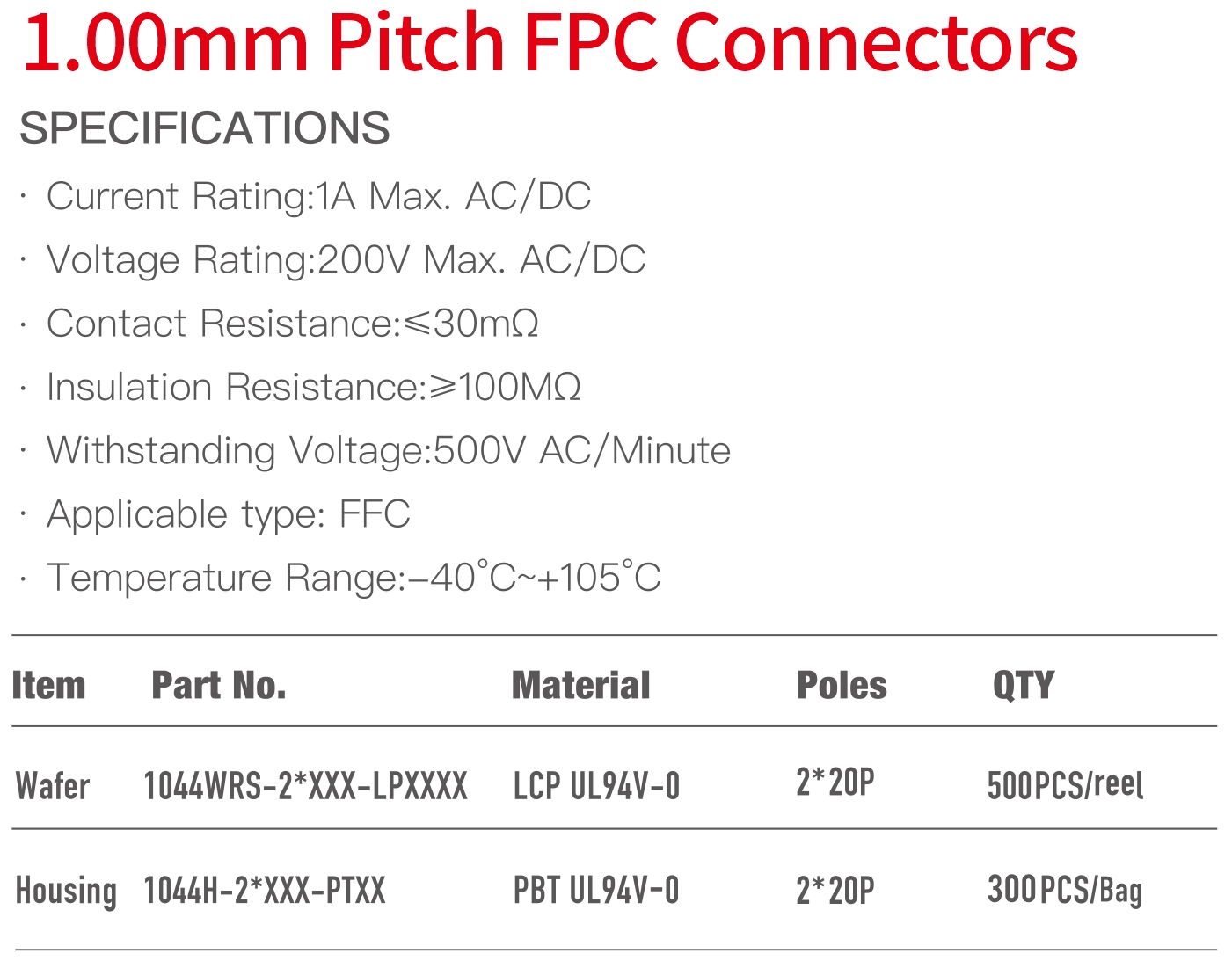1044 Double Row Series 1.00mm Pitch (.039") FPC Connectors