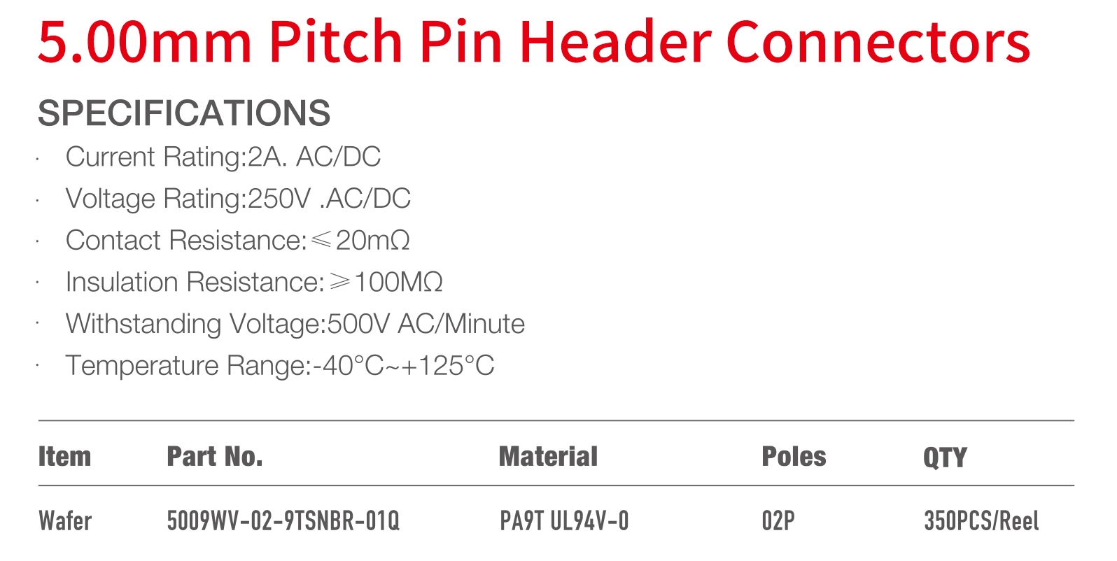 5009 Series 5.00mm Pitch (.197") Pin Header Connectors