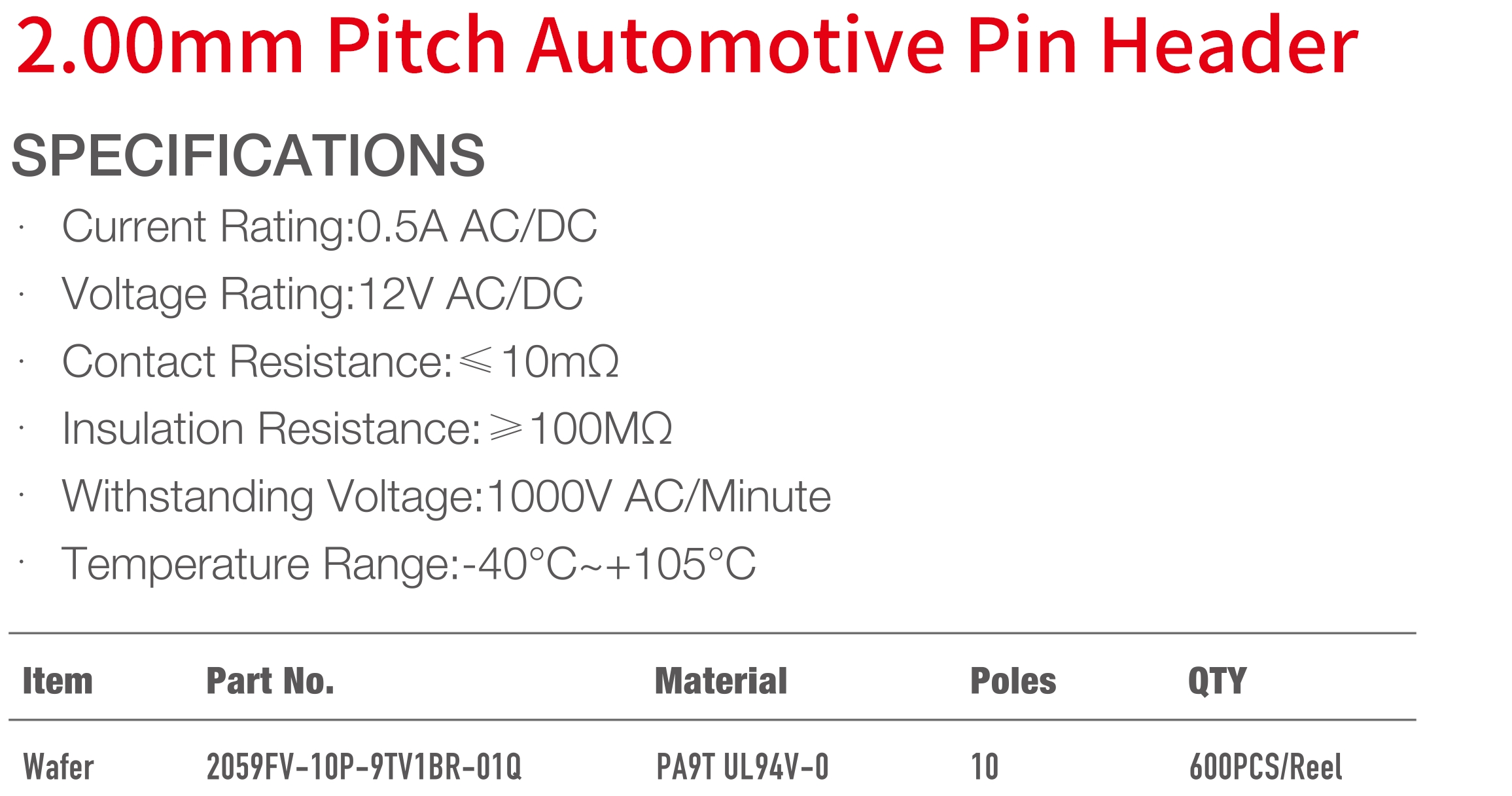 2059 Series 2.00mm Pitch (.079") Automotvie Pin Header