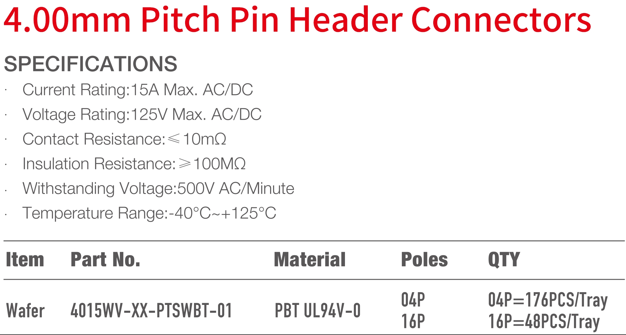 4015 Series 4.00mm Pitch (.157") Pin Header Connectors