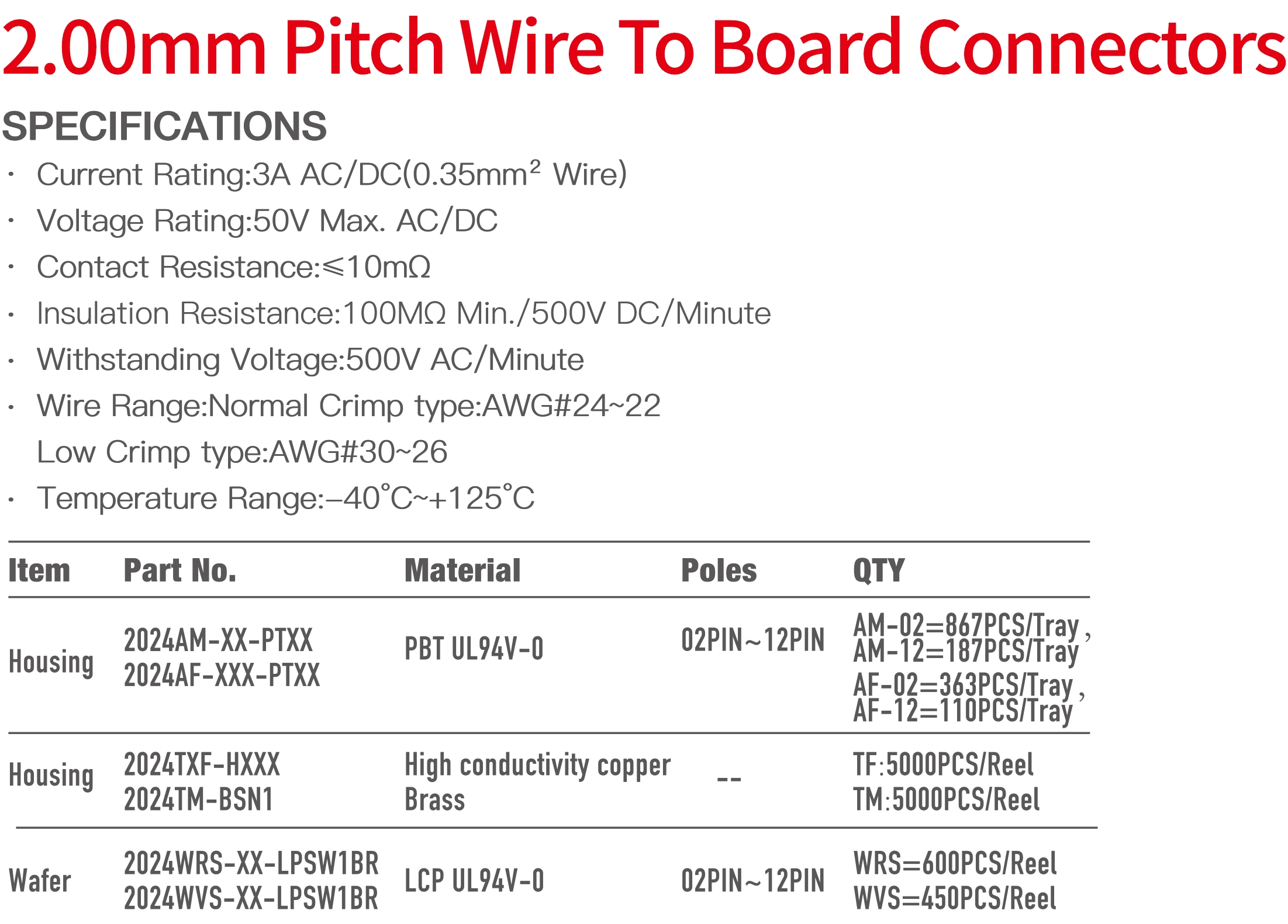 2024 Single Row Series 2.00mm Pitch (.079") 車用二次鎖扣連接器